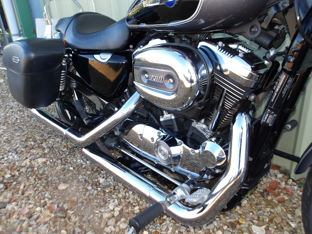 Harley Davidson XL1200 C Sportster Custom, In superb condition having only covered 13,347 miles from new, She comes with tasteful upgrades which include Vance & Hines exhausts, Quick release sissy bar, Lockable fuel cap, Chrome belt guard, Hard panniers, Fully Hpi checked, Only £6295.