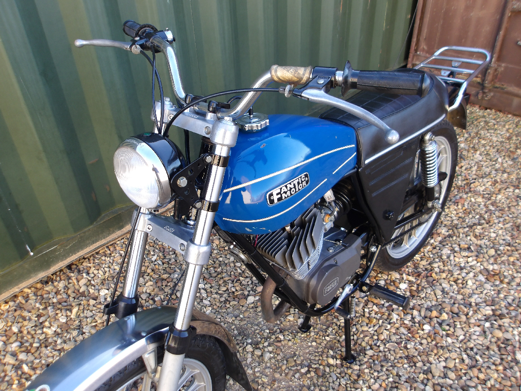 Fantic TX200 GT Four 50cc 1978, This bike was owned by the 1950s popular Italian 125cc Works GP rider Luigi Zinzani & was on window display in his motorcycle dealership based in Faenza Bolonga Italy from early 80s until after his passing aged 82 in 2007, A lovely un-molested original little machine with original tool kit in running order showing some signs of age & patina, Fully UK registered with V5 on a age related number Tax & Mot exempt, A very collectable machine with great history Only £3995.