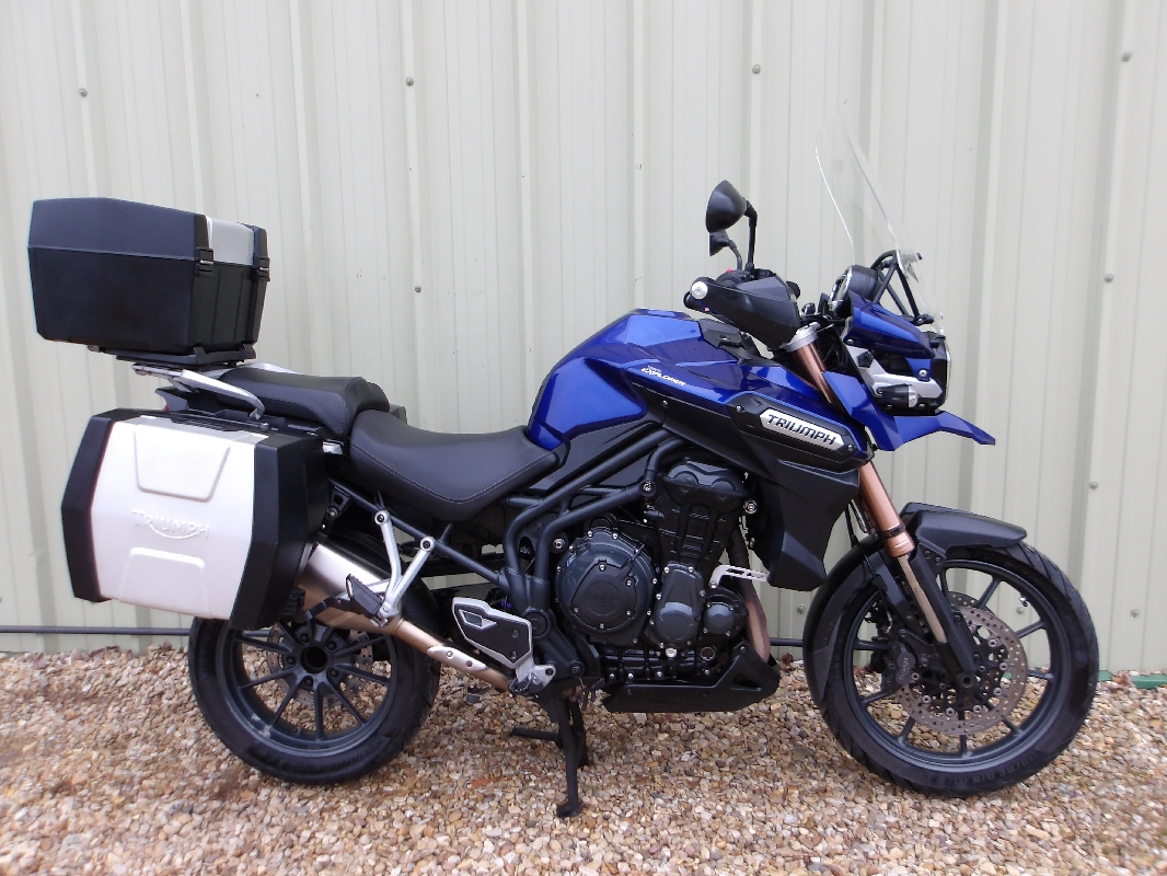 Triumph Tiger 1200 Explorer ABS 2013, Nice spec which includes Full 3 piece genuine Triumph luggage, Tall touring screen, Hyperpro rear shock absorber, Heated grips, Cruise control, Arrow exhaust, 2 Keys, Recent Full service, Fully Hpi checked. Only £4295.