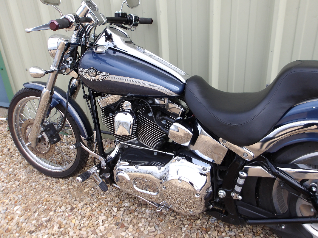 Harley Davidson FXSTD Softail Deuce 100th Anniversary Model, Comes fully loaded with Stage 1, Reinhart shotgun exhausts, High flow custom air cleaner, Straight bars, Chrome switch covers, Oil pressure gauge, Imported in from the States back in 2021 fully UK registered, Slightly up on the miles but please study the photos carefully as these represent its lovely condition, Great Value at just £5695.