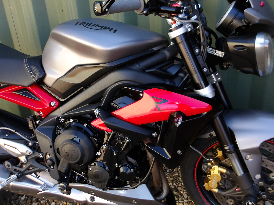 Triumph Street Triple R ABS, This bike has only covered 11,495 miles from new & comes with a fitted Arrow exhaust system, Adjustable levers, Bar end mirrors, RG crash protectors, Gel seat, Quick shifter, Evo tec indicators & tail tidy, 2 Keys, Service history, Hpi & DVLA History checked, Only £5795.